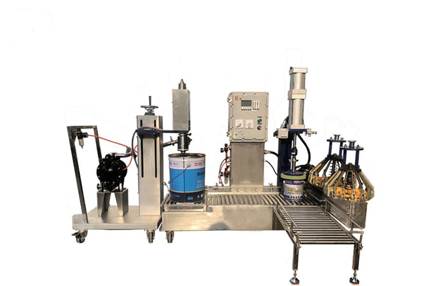 主要功能: 1.單頭灌裝;2.采用32位雙核CPU;3.自動加油,自動壓蓋,自動將桶送出;4.數字輸入設定重量;5.稱重數值及時顯示;6.可設定和存儲十種配方;7.凈重和毛重兩種灌裝方式;8.自動零位跟蹤;9.加料快/慢二級速度; 10.防爆配置;11.膠體磨配套連接.技術參數:稱重范圍≤10kg罐桶規(guī)格≤直徑300x高度400(mm)分度值1g,2g,5g,10g電源AC220±10% 50HZ準確度等級x(0.5)級氣源>0.5MPa灌裝速度8-12桶/分外型尺寸1350x1300x1400(mm)上海廣志自動化設備是專業(yè)生產200升灌裝機的廠家,歡迎廣大客戶前來咨詢,電話021-60518382 上海廣志自動化設備是專業(yè)生產200升灌裝機的廠家,歡迎廣大客戶前來咨詢,電話021-60518382 上海廣志自動化設備是專業(yè)生產200升灌裝機的廠家,歡迎廣大客戶前來咨詢,電話021-60518382