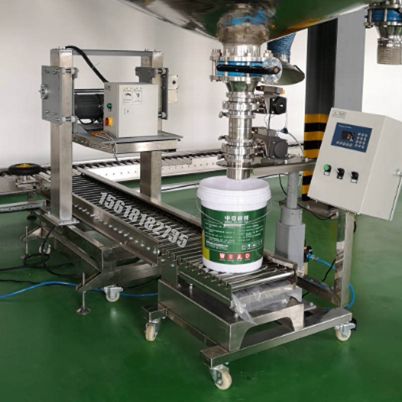 ?人工移上桶;手動啟動;自動開啟輸料泵及大小給料閥門;到設定工作點1關快給料閥門;到設定工作點2停輸料泵并關慢給料閥門;人工加蓋移桶zhi壓蓋位置(有輔助定位裝置);人工壓蓋,壓蓋結束人工移桶;入庫。(上下桶配不銹鋼滾道);