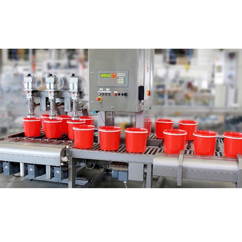 工藝流程:人工空桶上桶-自動輸送空桶-自動拔內蓋-自動灌裝計量-自動關蓋-自動重桶輸送