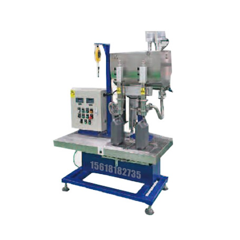 5L儲槽式雙槍灌裝機廣泛應用于化工、糧食、農藥等與液體狀物料相關的行業,適用在涂料、油漆、油墨、膠粘劑、固化劑、染料、清洗劑、機油、潤滑油、食用油、香精、溶劑、助劑、食品添加劑、農藥及其他有危險性化學產品等產品中。動作流程:當儲槽里原料低于下限位時,供料裝置自動打開給儲槽供料,當儲槽液位達到上限位時,關閉供料裝置。人工將空桶放到秤臺上,人工對孔,然后點擊啟動按鈕,儀表首先判桶并扣除空桶皮重,灌裝頭